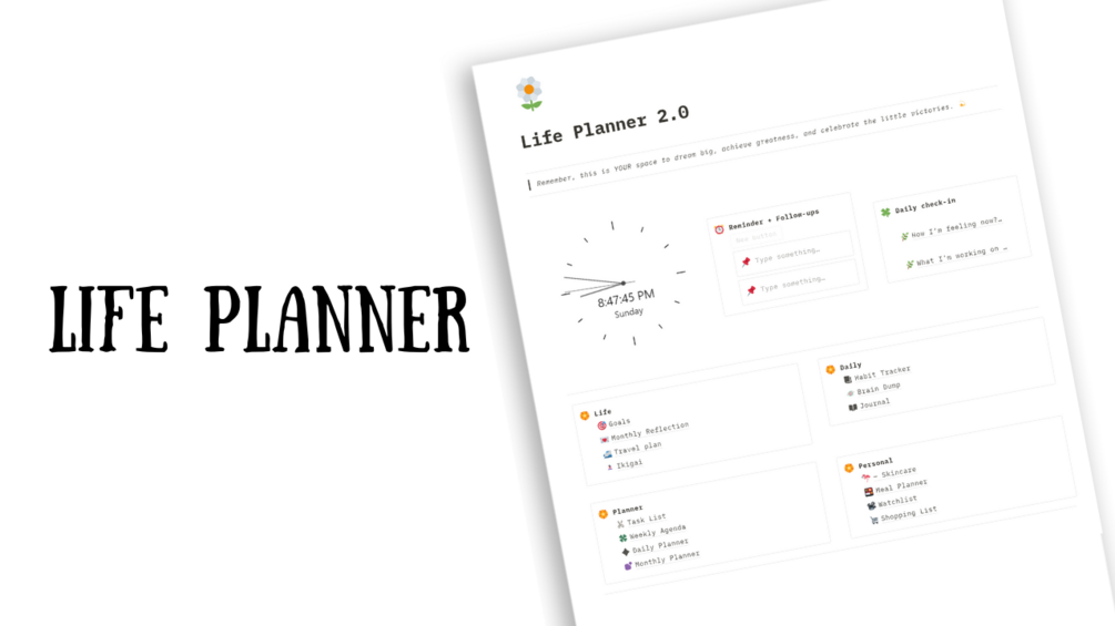 Introducing the Ultimate Life Planner 2.0 - your all-in-one Notion template for productivity and personal growth. With a range of features, it's your go-to tool to help you get organized and stay on top of your game.